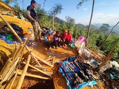 - วันที่[2025-11-18 ] อุทยานฯ ทองผาภูมิ - สนธิกำลัง ตชด.-ทหาร บุกป่าปิล๊อกคี่ รวบ 4 ต่างด้าวพร้อมปืน ลักลอบขุดทองในป่าต้นน้ำ 1A – ย้ำดำเนินคดีถึงที่สุด!....