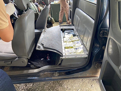 ผลตรวจทำเจ้าหน้าที่ผงะ! พบการ ดัดแปลงโครงสร้างตัวถังรถ และซุกซ่อนสิ่งผิดกฎหมายอย่างแนบเนียนภายในรถกระบะ Ford สีน้ำเงิน ทะเบียน ชบ 2438 ราชบุรี ของกลางที่ตรวจยึดได้ 1.ยาไอซ์ 94,500 กรัม (รวม 90 ห่อ) มูลค่าประมาณ 11,340,000 บาท 2.รถกระบะ Ford สีน้ำเงิน 1 คัน 3.เงินสด 10,000 บาท 4.โทรศัพท์มือถือ 2 เครื่อง เจ้าหน้าที่ฯ ควบคุมตัวผู้ต้องหา พร้อมของกลางทั้งหมด ส่งดำเนินคดีที่ สภ.สังขละบุรี ตามกฎหมายทันที