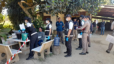 เมื่อเวลา 07.00 น. วันที่ 4 ธันวาคม 2568 ตำรวจ สภ.ไทรโยค จ.กาญจนบุรี ได้รับแจ้งเหตุฆ่าผู้อื่นโดยใช้อาวุธปืน บริเวณหน้าบ้านเลขที่ 230/1 หมู่ 6 ต.ศรีมงคล อ.ไทรโยค จึงรีบรุดตรวจสอบที่เกิดเหตุ ในที่เกิดเหตุพบ นางอารีย์ ตุ้มนิลการ อายุ 51 ปี ผู้ก่อเหตุ ยืนรอมอบตัวอยู่หน้าบ้านดังกล่าว โดยภายในบ้านพบอาวุธปืนลูกโม่ขนาด .38 วางอยู่ และบริเวณหน้าบ้านพบร่าง นายสมปอง ลำเภา อายุ 55 ปี ผู้ตาย นอนเสียชีวิตในสภาพถูกยิงหลายแห่ง