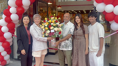 โดยมี H.E.Fuwad Thowfeek เอกอัครราชทูตสาธารณรัฐมัลดีฟส์ ประจำประเทศไทย Mr.Sayed Mahmoud ผจก.ฝ่ายปฏิบัติการเฟรนไชส์ Chicking คุณอนา วงศ์สิงห์ ผู้บริหารโครงการ The Bay คุณมาเรียม ยกยอคุณ ผู้จัดการธนาคารกรุงเทพ สาขาเอ็มโพเรียม และกลุ่มเพื่อนนักธุรกิจ ร่วมตำกระเช้าดอกไม้ร่วมแสดงความยินดี