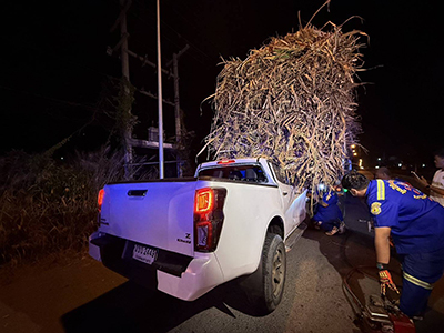 กาญจนบุรี ประเดิมเคสแรกฤดูเปิดหีบอ้อย! อาจาร์ยวิทยาลัยการอาชีพขับกระบะชนท้ายรถบรรทุกอ้อย เจ็บสาหัส ติดคาซาก รถกู้ภัยเร่งช่วยกลางดึก