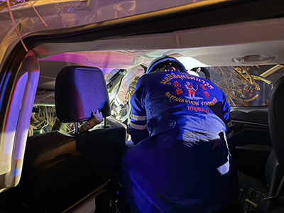 ที่เกิดเหตุพบรถกระบะอีซูซุ ดีแม็กซ์ สีขาว ทะเบียน 3 ขข 2449 กทม. ชนท้ายรถบรรทุกพ่วง 18 ล้อฮีโน่ บรรทุกอ้อยเต็มคัน สภาพด้านหน้ารถกระบะพังยับ ประตูฝั่งคนขับบิดงอ มีผู้บาดเจ็บคือนายศิริพัฒนา อายุ 30 ปี มีบาดแผลฉีกขาดที่ใบหน้า และหัวเข่าทั้งสองข้าง มีอาการมึนงง ติดอยู่ภายในรถไม่สามารถออกมาเองได้