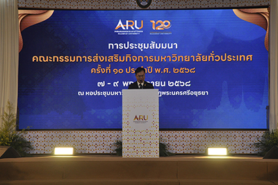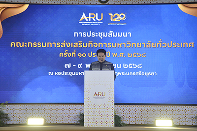 มหาวิทยาลัยราชภัฏพระนครศรีอยุธยา เจ้าภาพจัดการประชุมสัมมนาคณะกรรมการส่งเสริมกิจการมหาวิทยาลัยทั่วประเทศ ครั้งที่ 10 ซึ่งเป็นวาระพิเศษ ที่สอดคล้องกับการเฉลิมฉลองครบรอบ 120 ปี แห่งการสถาปนามหาวิทยาลัย สถาบันที่มีความภาคภูมิใจ ในฐานะ “มหาวิทยาลัยเพื่อการพัฒนาท้องถิ่น” ตั้งอยู่บนผืนแผ่นดิน “กรุงศรีอยุธยา” เมืองมรดกโลก บูรณาการองค์ความรู้ด้านการศึกษา วัฒนธรรม และนวัตกรรม เพื่อเสริมสร้างภาพลักษณ์และศักยภาพของมหาวิทยาลัยให้เป็นพลังสำคัญ ในการสืบสานคุณค่าความเป็นไทย ควบคู่กับการพัฒนาเศรษฐกิจฐานราก และยกระดับ Soft Power ของประเทศในระดับสากล ระหว่างวันที่ 7-9 พฤศจิกายน 2568