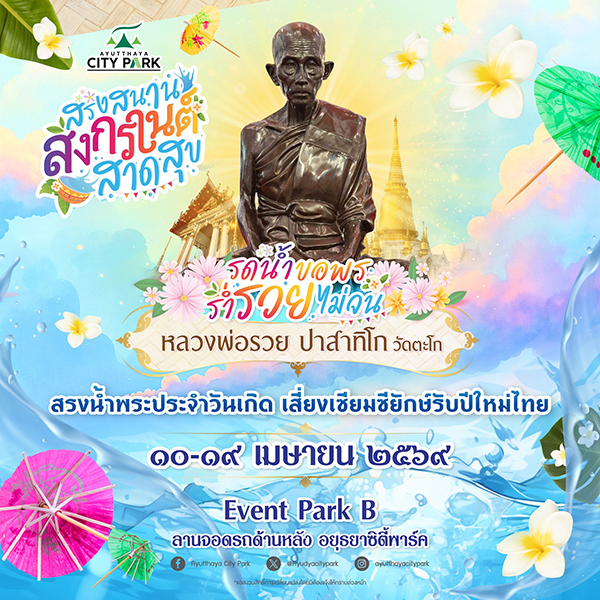 สรงสนานสงกรานต์สาดสุข - สงกรานต์2569 - หลวงพ่อรวย – อยุธยาซิตี้พาร์ค - ร่ำรวยไม่จน #ความสุขที่แตกต่างคู่อยุธยา