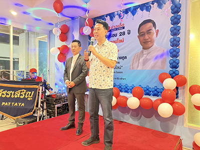 โดยในพิธีได้รับเกียรติจากนายอนุศักดิ์ พิริยอมร นายอำเภอบางละมุง และนายปรเมศวร์ งามพิเชษฐ์ นายกเมืองพัทยา ร่วมเป็นประธานกล่าวอวยพรและแสดงความยินดี ท่ามกลางมวลมิตรแทบทุกสาขาอาชีพในเมืองพัทยา จังหวัดชลบุรี เข้าร่วมงานอย่างคึกคัก ทั้งภาคข้าราชการ ภาคเอกชน กลุ่มการเมือง และสื่อมวลชน อาทิ