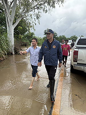 กาญจนบุรี – อำเภอบ่อพลอย อ่วมเจอสภาพอากาศแปรวนทำฝนตกหนักน้ำป่าไหลท่วม 2 ตำบล 6 หมู่บ้าน มท. 3 ผวจ. ห่วงใยสั่ง ปภ.ร่วมนายอำเภอ เร่งช่วยเหลือผู้ประสบภัย พร้อมสื่อมวลชน นำถุงยังชีพลุยน้ำไหลเชียวมิดเอว เข้าไปแจกสิ่งของให้ชาวบ้าน