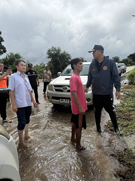 ล่าสุด นายศักดิ์ดา วิเชียรศิลป์ รัฐมนตรีช่วยว่าการกระทรวงมหาดไทย ได้ห่วงใยประชาชน ที่ประสบปัญหาน้ำท่วมในพื้นที่อำเภอบ่อพลอย ได้สั่งให้ทางป้องกันภัยจังหวัดกาญจนบุรี พร้อมนำถุงยังชีพเข้าไปช่วยเหลือประชาชน ที่ประสบปัญหาบ้านถูกน้ำท่วมเร่งด่วน โดยได้ประสานกับ นายชวโรจน์ มากแก้ว นายกอำเภอบ่อพลอย พร้อมจัดเจ้าหน้าที่ อส. และสื่อมวลชน เดินเท้าลุยน้ำที่สูงระดับหน้าอก เข้าไปมีระยะทางเกือบ 1 กิโลเมตร รวมทั้งน้ำที่ไหลเชียว เพื่อนำถุงยังชีพเข้าไปส่งมอบให้กับประชาชน ที่ไม่สามารถออกมาสู่โลกภายนอกได้ มีอาหารยังชีพ และคาดว่าสถานการณ์น่าจะเข้าสู่ปกติ หากไม่มีฝนตกลงหนักอีก แต่ยังเฝ้าติดตามสถานการณ์ เนื่องจากในพื้นที่ยังคงมีฝนตกลงมาไม่ขาดสาย ซึ่งทางกรมอุตุฯ ได้แจ้งว่าสถานการณ์ฝนจะตกตั่งแต่วันที่ 28 ต.ค. ไปจนถึงวันที่ 3 พ.ย. 2568 นี้