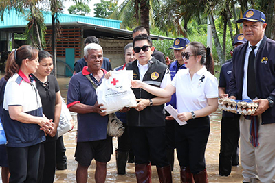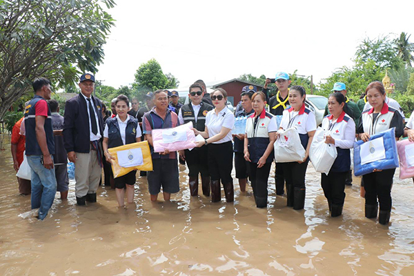 ผู้ว่าฯ กาญจนบุรี - ลงพื้นที่ให้กำลังใจผู้ประสบอุทกภัยบ้านวังหิน มอบถุงยังชีพบรรเทาความเดือดร้อน
