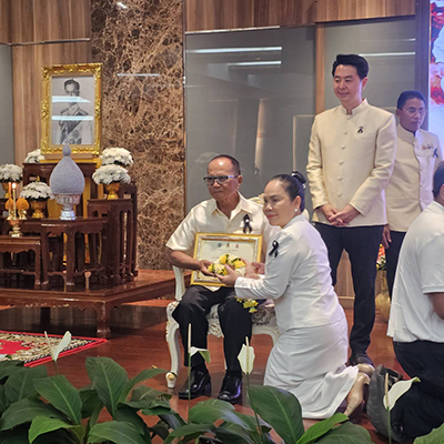 ในพิธีได้รับเกียรติจาก นายสนธยา คุณปลื้ม อดีตรัฐมนตรีว่าการกระทรวงวัฒนธรรม และนางสุกุมล คุณปลื้ม ประธานคณะกรรมการพัฒนาสตรีภาคกลาง เข้าร่วมร่วมเป็นเกียรติ พร้อมร่วมแสดงความยินดี กับผู้ได้รับการประกาศเกียรติคุณ โดยมีบุตร–ธิดา เข้าร่วมพิธีวางพวงมาลัย เพื่อแสดงความกตัญญูกตเวทิตาต่อบิดา ท่ามกลางบรรยากาศอันสำรวมและสมพระเกียรติ
