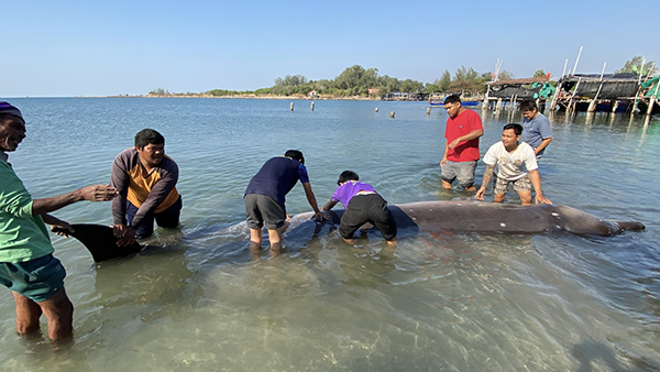 จันทบุรี-พบปลาวาฬหัวขวด ตาย เกยตื้น ชาวบ้านทราบข่าวแห่! มุงกันเต็มหาด