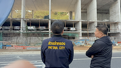 ส่วนเรื่องที่สอง เรื่องของอาคารที่มีการก่อสร้างไม่ตรงแบบ โดยทาง ปปช.ชี้ว่าเป็นการออกโฉนดโดยมิชอบ และอยู่ระหว่างสำนักงานที่ดินจังหวัดชลบุรี จะชี้ชัดว่าออกโดยมิชอบหรือไม่ ซึ่งถ้าวินิจฉัยแล้วพบว่าออกโดยมิชอบจริง ก็ให้ทางเอกชนเป็นผู้ทำการรื้อถอน ถ้าออกโดยชอบให้มายื่นดัดแปลงอาคาร ทั้งนี้คำสั่งห้ามใช้อาคารดังกล่าวดำเนินการมาตั้งแต่ปี 67 แต่พบว่ามีการละเมิดคำสั่ง มีการให้นำรถยนต์เข้ามาจอดซึ่งเป็นอันตราย นายกเมืองพัทยา จึงมอบอำนาจให้เจ้าหน้าที่ฯ พนักงานช่างเมืองพัทยา ไปแจ้งความบันทึกประจำวัน เพื่อเอาผิดกับผู้เกี่ยวข้องในทันที
