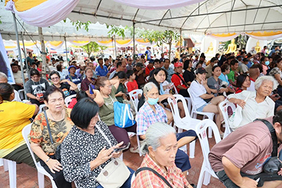 ว่าที่ร้อยตรี ดร.สมทรง สรรพโกศลกุล นายกเทศมนตรีนครพระนครศรีอยุธยา กล่าวว่า ระดับน้ำในแม่น้ำเจ้าพระยา คลองเมือง ในเขตพื้นที่รับผิดชอบเทศบาลนครพระนครศรีอยุธยา ยังคงเพิ่มสูงขึ้นต่อเนื่อง ส่งผลให้มีประชาชนได้รับผลกระทบจากน้ำท่วมจำนวน 10 ตำบล 39 ชุมชน จึงได้ร่วมกับวัดศาลาปูนวรวิหาร เพื่อช่วยเหลือบรรเทาความเดือดร้อนให้กับพี่น้องประชาชน นอกจากนี้ ทำบุญให้กับบรรพบุรุษและผู้มีพระคุณของข้าราชการที่เกษียณและโยกย้าย เปิดโรงทานช่วยเหลือผู้ประสบภัยน้ำท่วม และแสดงมุทิตาจิตให้แก่ผู้ที่เกษียณอายุราชการและโยกย้าย