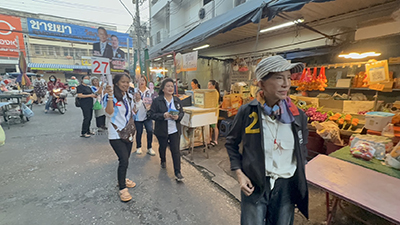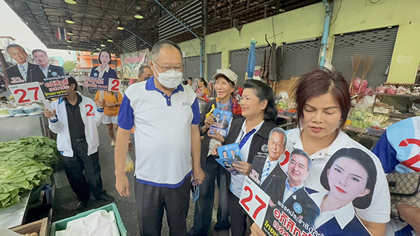 ชลบุรี - ‘รังสิมา‘ ควง ‘พจนารถ‘ ลุยตลาดเช้านาเกลือ ชี้ ปชป.ชูการเมืองสุจริต-เพิ่มเงินเดือนให้ผู้สูงอายุ