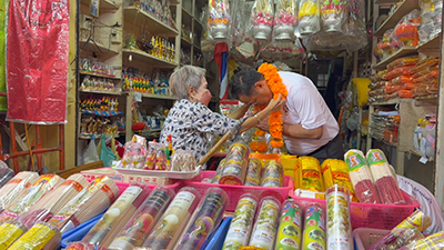 โดยระหว่างนายอนุทิน และคณะได้เดินมายังจุดกลางตลาด ได้พบกับนายธนาธร จึงรุ่งเรืองกิจ ผู้ช่วยหาเสียงพรรคประชาชน และผู้สมัคร สส.พระนครศรีอยุธยาของพรรคประชาชน โดยนายอนุทิน ได้โบกมือทักทายก่อนที่จะเดินมาจับมือกัน ซึ่งนายธนาธรได้ยกมือไหว้นายอนุทิน และนายธนาธร ได้ยกมือไหว้นายอนุทิน พร้อมกับกล่าวว่า "พี่ไปทางโน้นใช่ไหม ผมจะได้ไปทางนี้" นายอนุทิน ก็บอกว่า เสียงจะได้ไม่ตีกัน และนายอนุทินทักทาย นายทวิวงศ์ โตทวิวงษ์ อดีต สส.พระนครศรีอยุธยา พรรคประชาชนว่า “เคยเจอกัน” จากนั้นจึงแยกกันไปในหาเสียงในตลาดต่อไป