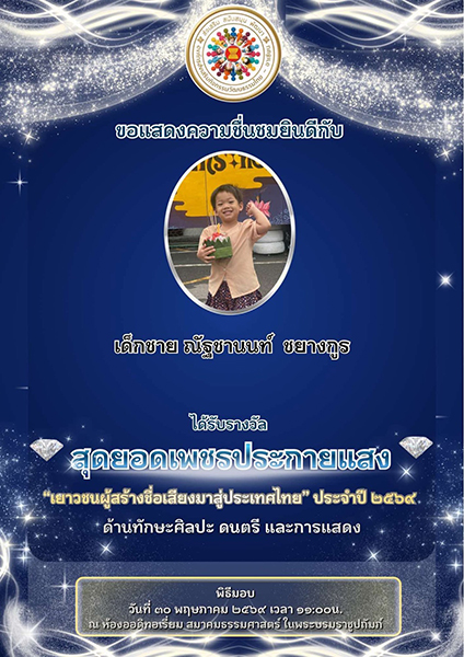 องค์กรส่งเสริมกิจกรรม วัฒนธรรมไทย-อาเซียน – มอบรางวัล “น้องเอเบิ้ล” สุดยอดเพชรประกายแสง....อ่านข่าว>>