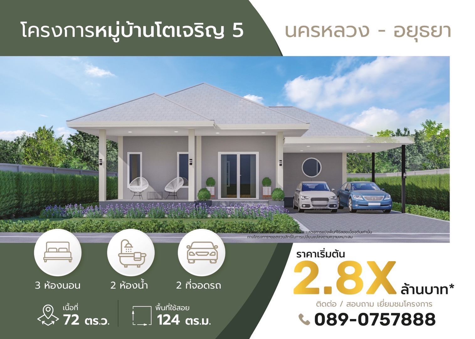 - โครงการหมู่บ้านโตเจริญ 5 To Charoen Village นครหลวง – อยุธยา ....