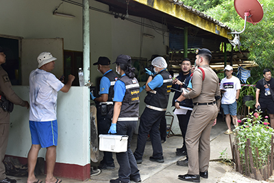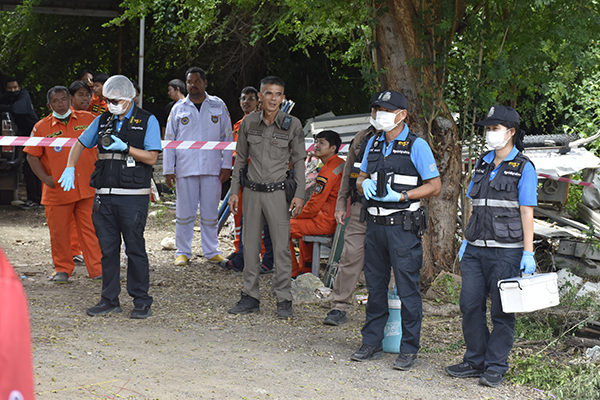 ที่เกิดเหตุเป็นห้องเช่าชั้นเดียวติดกันหลายห้อง ภายในพบศพผู้เสียชีวิตรายแรกเป็นชาย ถูกยิงเข้าขมับขวา นอนหงายอยู่บริเวณหน้าประตูห้องนอน ข้างศพมีอาวุธปืนลูกโม่ขนาด .22 ตกอยู่พร้อมกระสุนจำนวนหนึ่ง ส่วนบริเวณด้านหลังห้องเช่า พบศพหญิง ถูกยิงเข้าขมับขวาเช่นกัน นอนหงายจมกองเลือด