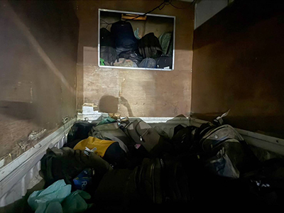 ผลการจับกุม พบแรงงานเมียนมา 90 คน ซุกซ่อนทั้งในรถกระบะคอก สีน้ำเงิน ที่พรางด้วยกองกล้วย, รถกระบะสีเทา, รถตู้สีขาว และรถกระบะตู้ทึบ สีส้ม ที่ถูกดัดแปลงทำสีเลียนแบบรถของบริษัทขนส่งชื่อดังอย่างแนบเนียน โดยสามารถจับกุมผู้ต้องหา 2 ราย ส่วนอีก 2 รายอาศัยความมืดหลบหนีไปได้