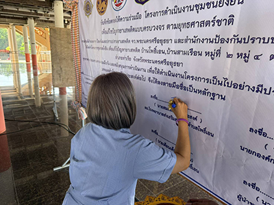 อำเภอท่าเรือ ร่วมกับสถานีตำรวจภูธรปากท่า วัดสามเรือน ภาคีเครือข่าย บูรณาการขับเคลื่อนโครงการดำเนินงานตำบลยั่งยืน บันทึกข้อตกลง MOU เพื่อแก้ไขปัญหายาเสพติด แบบครบวงจรตามยุทธศาสตร์ชาติ