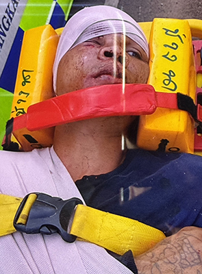 ส่วนกู้ภัยสว่างกตัญญู ได้นำตัวผู้ต้องหา ซึ่งมีอาการสาหัส นำส่งโรงพยาบาลนายายอาม มีอาการไหลขวาผิดรูป มีแผลที่ศรีษะ แขนขวาผิดรูป ถลอกตามร่างกาย และใบหน้าซึ่งทราบชื่อผู้ก่อเหตุภายหลัง ชื่อนายสิทธิศักดิ์ หรือเนส ขอสงวนนามสกุล อายุ 32 ปี อยู่ในพื้นที่อำเภอวังทอง จังหวัดพิษณุโลก