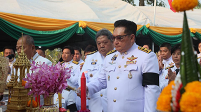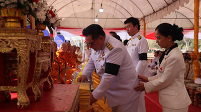 จากนั้นในเวลา 08.30 น. นายชวนินทร์ วงศ์สถิตจิรกาล ผู้ว่าราชการจังหวัดพระนครศรีอยุธยา เป็นประธานในพิธีวางพานพุ่มดอกไม้สดถวายราชสักการะแด่สมเด็จพระรามาธิบดีที่ 1 พร้อมทำบุญถวายสังฆทานและอาหารคาวหวาน แด่พระสงฆ์สมณศักดิ์ 10 รูป โดยจังหวัดพระนครศรีอยุธยา กำหนดจัดเป็นประจำทุกปี เพื่อความเป็นสิริมงคลต่อบ้านเมือง พร้อมทั้งน้อมรำลึกถึงพระมหากรุณาธิคุณ เทิดพระเกียรติ และระลึกถึงอดีตขององค์ปฐมบรมกษัตริย์แห่งกรุงศรีอยุธยา