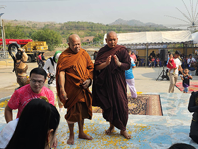 ในพิธีมีพระอาจารย์อุทัย อุตตโม (ปู่องค์ดำ) วัดภูยอดรวย เป็นประธานฝ่ายสงฆ์ พร้อมด้วยพระครูปัญญา พัชรโสภิต เจ้าคณะตำบลหนองแจง พระอาจารย์รุ่งโรจน์ จันทสาโร วัดอู่เรือ เข้าร่วมพิธี ท่ามกลางชาวบ้าน ประชาชน และแขกผู้มีเกียรติเข้าร่วมเป็นจำนวนมาก อาทิ พ.ต.ท.เสรีวริศ ปริญญากร รอง ผกก.ป.สภ.บึงสามพัน ผอ.วิไลพร ยิ้มเยาะ ผู้อำนวยการโรงเรียนบ้านคลองตะคร้อ และผู้ใหญ่สาคร อ่อนเป่ ผู้ใหญ่บ้านหมู่ 18