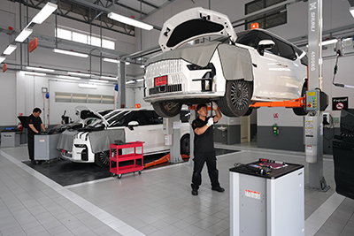 ด้านศูนย์บริการหลังการขาย Zeekr House Primus ได้ออกแบบพื้นที่เพื่อรองรับการให้บริการอย่างครบวงจร ครอบคลุมทั้งงานตรวจเช็ก ซ่อมแซม บำรุงรักษา รวมถึงงานซ่อมสีและตัวถัง ภายใต้มาตรฐานคุณภาพระดับสูง โดยทีมช่างผู้เชี่ยวชาญที่ผ่านการอบรมตามหลักสูตรของ Zeekr พร้อมด้วยอุปกรณ์และเทคโนโลยีที่ทันสมัย เพื่อรองรับการดูแลรักษารถยนต์ได้อย่างมีประสิทธิภาพสูงสุด โดยมีช่องซ่อมรวม 8 ช่อง รองรับรถยนต์เข้ารับบริการได้ถึง 600 คันต่อเดือน
