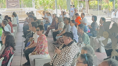 ในพิธีได้จัดให้มีพิธีเจริญพระพุทธมนต์โดยพระเถรานุเถระจำนวน 10 รูป จากนั้นทั้งหมดได้ร่วมกันตักบาตรทำบุญ โดยพบว่ามีแขกเหรื่อทยอยร่วมงานเป็นจำนวนมาก อาทิ นายพงศ์ธสิษฐ์ ปิจนันท์ รองผู้ว่าราชการจังหวัดชลบุรี นายอนุศักดิ์ พิริยอมร นายอำเภอบางละมุง นายปรเมศวร์ งามพิเชษฐ์ นายกเมืองพัทยา นายวุฒิศักดิ์ เริ่มกิจการ รองนายกเมืองพัทยา นายมีชัย อินทร์พิทักษ์ ประธานคณะทำงานนายกเมืองพัทยา นพ.วิชัย ธนาโสภณ ผู้อำนวยการโรงพยาบาลพัทยาปัทมคุณ พ.ต.อ.เอนก สระทองอยู่ ผกก.สภ.เมืองพัทยา