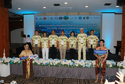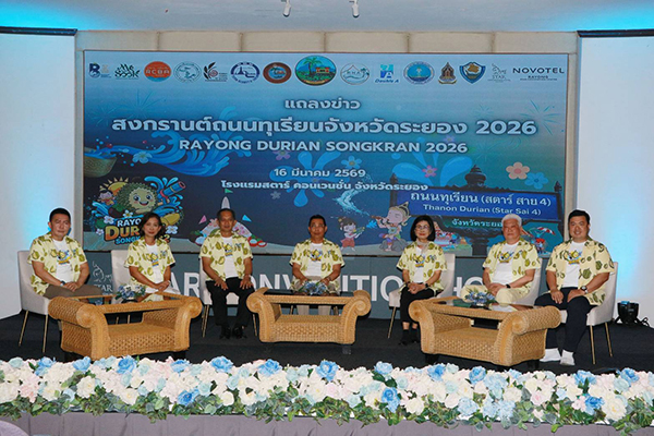 วันที่ 16 มีนาคม 2569 นายไตรภพ วงศ์ไตรรัตน์ ผู้ว่าราชการจังหวัดระยอง พร้อมด้วย นายประสานต์ พนฤกษาชาติ รองนายกองค์การบริหารสวนจังหวัดระยอง, นางพิศมัย ศุภนันตฤกษ์ นายกสมาคมโรงแรมจังหวัดระยอง, นายวรวุฒิ ค่านสมพงศ์ วัฒนธรรมจังหวัดระยอง, นายทินกร ลาวัณย์เสถียร ประธานหอการค้าจังหวัดระยอง และนายชาญวิทย์ จารุสมบัติ กรรมการและรองผู้จัดการใหญ่ด้านสื่อสารและภาพลักษณ์องค์กร บริษัท ดั๊บเบิ้ล เอ (1991) จำกัด (มหาชน) ร่วมแถลงข่าวเตรียมจัดงาน “สงกรานต์ถนนทุเรียน จังหวัดระยอง 2026 ครั้งที่ 2 ท่ามกลางแขกผู้มีเกียรติ ผู้แทนภาครัฐ-เอกชน เข้าร่วม ณ ห้องจันสุดา โรงแรมสตาร์ คอนเวนชั่น จ.ระยอง