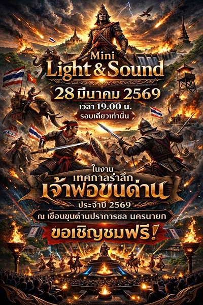 - วันที่[2026-03-01 ] “นครนายกจัดใหญ่ครั้งประวัติศาสตร์” - งานรำลึกเจ้าพ่อขุนด่าน ประจำปี 2569....