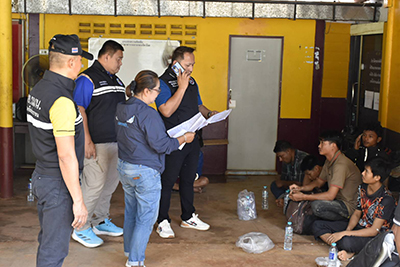 ผู้หลบหนีเข้าเมือง ชาวเมียนมา จำนวน 9 คน (ชาย 8 หญิง 1) แจ้งข้อกล่าวหา “เป็นบุคคลต่างด้าวหลบหนีเข้ามาและอยู่ในราชอาณาจักรไทยโดยไม่ได้รับอนุญาต”