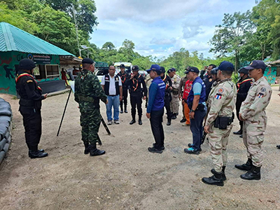 พ.อ.ปิยะเณศร์ ภัทรศาศวัตวงษ์ รองผู้บังคับหน่วยเฉพาะกิจลาดหญ้า พร้อมด้วยนายสมบูรณ์ แผนสมบูรณ์ นายอำเภอเมืองกาญจนบุรี พ.อ.สรรเสริญ ไพรโสภา ผู้บังคับการกรมทหารพรานที่ 14 และหน่วยงานที่เกี่ยวข้อง ลงพื้นที่ตรวจช่องทางพุน้ำร้อน เตรียมแผนรองรับสถานการณ์ พร้อมจัดตั้งจุดตรวจ–จุดสกัดตามแนวชายแดน