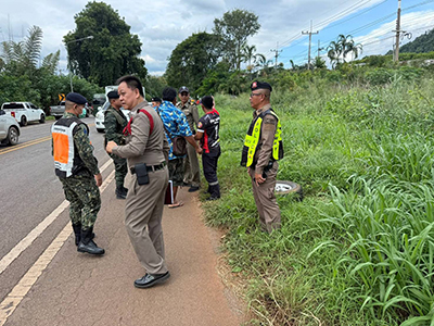 ขณะเดียวกัน มีรายงานจากชาวบ้าน ที่เห็นเหตุการณ์ว่า หลังเกิดเหตุคนขับรถกระบะ และแรงงานอีกประมาณ 10 คน ได้วิ่งหลบหนีเข้าป่าข้างทาง เจ้าหน้าที่ฝ่ายความมั่นคง ตำรวจ และอาสาสมัคร จึงระดมกำลังไล่ล่าควบคู่กับการช่วยเหลือผู้บาดเจ็บ