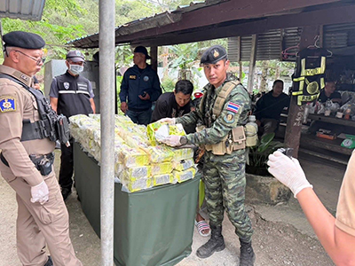 ด่านน้ำเกริ๊ก! ฉก.ลาดหญ้า–กกล.สุรสีห์ - สกัดจับหนุ่มเมียนมา ขนยาไอซ์ 94 กก. มูลค่ากว่า 11 ล้านบาท