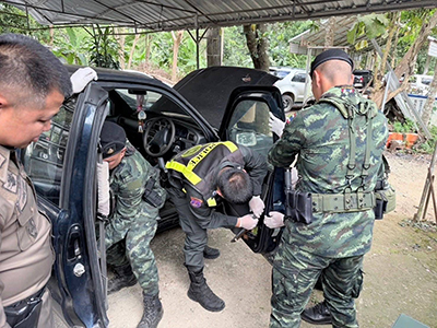 กาญจนบุรี-เมื่อวันที่ 17 พฤศจิกายน 2568 เจ้าหน้าที่ ฉก.ลาดหญ้า กกล.สุรสีห์ สนธิกำลังร่วมฝ่ายความมั่นคงในพื้นที่ ปฏิบัติหน้าที่ ณ จุดตรวจร่วมน้ำเกริ๊ก ม.8 ต.หนองลู อ.สังขละบุรี จ.กาญจนบุรี ตรวจพบชายต้องสงสัยขับรถกระบะผ่านด่าน ลักษณะมีพิรุธ