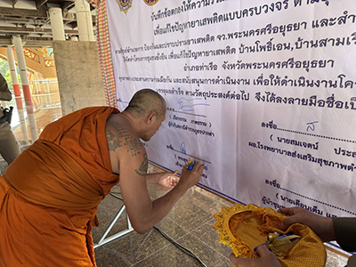อำเภอท่าเรือ ร่วมกับสถานีตำรวจภูธรปากท่า วัดสามเรือน ภาคีเครือข่าย บูรณาการขับเคลื่อนโครงการดำเนินงานตำบลยั่งยืน บันทึกข้อตกลง MOU เพื่อแก้ไขปัญหายาเสพติด แบบครบวงจรตามยุทธศาสตร์ชาติ