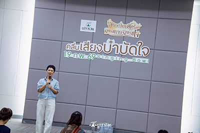 โดยวิทยากร ครูบิ๊ก - จิตตินันท์ นันทไพบูลย์ นักเยียวยาด้วยคลื่นเสียงบำบัด และผู้เชี่ยวชาญด้านการฝึกสติ (Mindfulness) มากว่า 20 ปี จากบ้านเสียงรักษา (Bangkok Sound Healing) ที่มาถ่ายทอดความรู้และนำเวิร์กชอป "คลื่นเสียงบำบัดใจ Singing Bowl" ซึ่งเป็นศาสตร์ที่ใช้ความถี่จากขันทิเบตช่วยดีท็อกซ์พลังงานลบ ผ่อนคลายความเครียดสะสม และบำบัดอาการนอนไม่หลับ เพื่อให้ผู้เข้าร่วมกิจกรรมได้รีเฟรชตัวเอง ปรับสมดุลระบบประสาท ลดความวิตกกังวล และส่งเสริมคุณภาพการนอนหลับให้ดียิ่งขึ้น ณ ชั้น 2 ห้อง Meeting Room 5 – 6 ศูนย์การค้าอยุธยาซิตี้พาร์ค