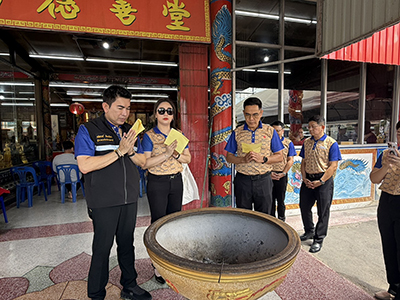 ในโอกาสนี้ ผู้ว่าราชการจังหวัดกาญจนบุรี นายกเหล่ากาชาดกาญจนบุรี ได้มอบกระเช้าเพื่อเป็นขวัญกำลังใจแก่เจ้าหน้าที่และอาสาสมัคร พร้อมทั้งร่วมทำบุญบริจาคโลงศพช่วยเหลือผู้ยากไร้ และสักการะสิ่งศักดิ์สิทธิ์ ณ ศาลเจ้าพ่อขุนรัตนาวุธ เพื่อความเป็นสิริมงคล