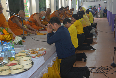อำเภอท่าเรือ บูราการจัดโครงการเข้าวัด – เข้าวา ทำบุญตักบาตร ข้าวสวย อาหาร คาวหวาน พระสงฆ์ จำนวน 10 รูป ฟังพระสงฆ์เทศน์ 1 กัณฑ์ มอบทุนการศึกษา นักเรียน จำนวน 5 ทุน