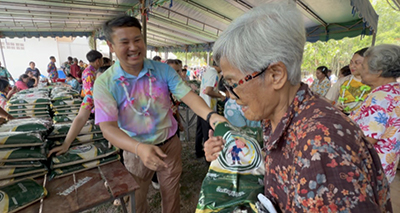 เวลาต่อมาได้จัดให้มีการรดน้ำ เพื่อขอพรผู้สูงอายุที่เข้าร่วมในพิธี “โครงการสืบสานประเพณีไทยใส่ใจผู้สูงอายุ” สร้างความดีใจภูมิใจกับโครงการ โครงการนี้ พร้อมทั้งแจกข้าวสาร คนล่ะ 1 ถุง ให้กับผู้สูงอายุที่เข้าร่วมในกิจกรรมครั้งนี้ทุกคน ทานอาหารที่นำมาประกอบเลี้ยงในช่วงเที่ยง ให้กับผู้สูงอายุให้กินอิ่มหนำสำราญทุกคน