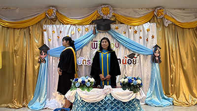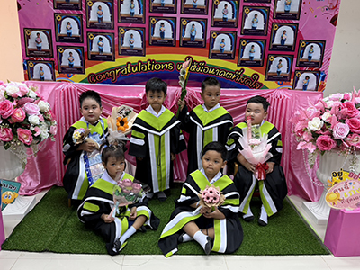 ต่อจากนั้นเป็นการแสดงของเด็กเล็ก บนเวทีก่อนรับวุฒิบัตร มีการถ่ายรูปกับครอบครัว ผู้ปกครอง ต่างก็นำช่อดอกไม้มาแสดงความยินดี ส่วนบัณฑิตน้อยคนเก่งทั้งหลายก็แต่งตัวในแบบฟอร์มของชุดครุย สีสันสดใสสวยงาม เป็นที่ภาคภูมิใจของผู้ปกครอง ในการแสดงผู้ปกครองต่างก็หยิบ โทรศัพท์เพื่อบันทึกภาพเก็บไว้ในความทรงจำ ต่างก็ยิ้มอย่างมีความสุข เมื่อเห็นลูกหลานได้เข้าพิธีรับมอบวุฒิบัตร เมื่อการแสดงเสร็จสิ้น มีการมอบของขวัญจากผู้ใหญ่ใจดี เป็นรางวัลให้กับบัณฑิตน้อยคนเก่งที่ทำการแสดงทุกๆคน