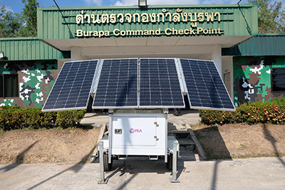 ผู้ช่วยผู้ว่าการการไฟฟ้าส่วนภูมิภาค เขต 1 (ภาคกลาง) จังหวัดพระนครศรีอยุธยา มอบรถลากระบบกักเก็บพลังงานแสงอาทิตย์ รุ่นทดลองใช้งาน ขนาด 9.6 กิโลวัตต์-ชั่วโมง ให้แก่ ด่านตรวจกองกำลังบูรพา จังหวัดสระแก้ว