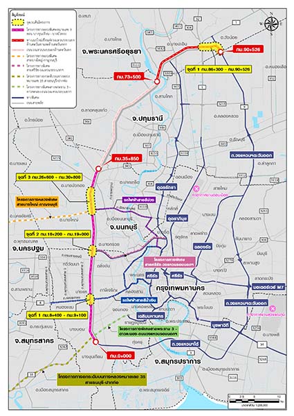 กรมทางหลวง เตรียมประชุมประชาสัมพันธ์โครงการงานสำรวจจัดทำแผนที่แสดงรายละเอียดของอสังหาริมทรัพย์และประมาณราคา เพื่อกำหนดเป็นเงินค่าทดแทนในการเวนคืน โครงการทางหลวงพิเศษระหว่างเมืองหมายเลข 9 บริเวณถนนวงแหวนรอบนอกกรุงเทพมหานคร ตอน ทางยกระดับบางขุนเทียน – บางบัวทองและบริเวณทางแนวใหม่เชื่อมต่อวงแหวนรอบนอกกรุงเทพมหานคร ด้านตะวันตกและด้านตะวันออก