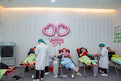 นอกจากนี้ คู่รักยังได้ร่วมส่งต่อความรักจากพลังแห่งการให้ ในกิจกรรม “อยุธยาซิตี้พาร์ค รวมใจให้ชีวิต” โดยได้รับการประสานความร่วมมือจาก สำนักงานภาคบริการโลหิตแห่งชาติที่ 2 จังหวัดลพบุรี ที่มาร่วมบอกรักผ่านการให้ที่ยิ่งใหญ่ ด้วยการเปิดรับบริจาคโลหิต เติมเต็มความต้องการกลุ่มโลหิตที่อยู่ในภาวะขาดแคลน และการเปิดรับบริจาคดวงตา อวัยวะและร่างกาย เพื่อส่งต่อความรักช่วยเหลือเพื่อนมนุษย์ จากเหล่ากาชาดจังหวัดพระนครศรีอยุธยา บริเวณชั้น 2 ข้างร้าน Sizzler อีกด้วย