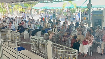 ในพิธีได้จัดให้มีพิธีเจริญพระพุทธมนต์โดยพระเถรานุเถระจำนวน 10 รูป จากนั้นทั้งหมดได้ร่วมกันตักบาตรทำบุญ โดยพบว่ามีแขกเหรื่อทยอยร่วมงานเป็นจำนวนมาก อาทิ นายพงศ์ธสิษฐ์ ปิจนันท์ รองผู้ว่าราชการจังหวัดชลบุรี นายอนุศักดิ์ พิริยอมร นายอำเภอบางละมุง นายปรเมศวร์ งามพิเชษฐ์ นายกเมืองพัทยา นายวุฒิศักดิ์ เริ่มกิจการ รองนายกเมืองพัทยา นายมีชัย อินทร์พิทักษ์ ประธานคณะทำงานนายกเมืองพัทยา นพ.วิชัย ธนาโสภณ ผู้อำนวยการโรงพยาบาลพัทยาปัทมคุณ พ.ต.อ.เอนก สระทองอยู่ ผกก.สภ.เมืองพัทยา
