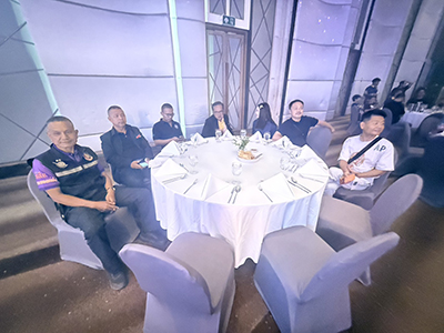 ภายในงานได้มีการจัดเลี้ยงอาหารค่ำ แบบบุฟเฟต์นานาชาติ มากมายหลายเมนู พร้อมเครื่องดื่ม ก่อนมีการจับรางวัลสร้างสีสัน โดยมี พ.ต.อ.เอนก สระทองอยู่ ผกก.สภ.เมืองพัทยา ร่วมให้การต้อนรับผู้เข้าร่วมงานด้วยความเป็นกันเอง พร้อมมีการแสดงดนตรีสร้างความสนุกสนาน และนายสุรัตน์ เมฆะวรากุล ประธานสภาวัฒนธรรมอำเภอบางละมุง ในฐานะผู้บริหารโรงแรม คอยอำนวยสะดวก