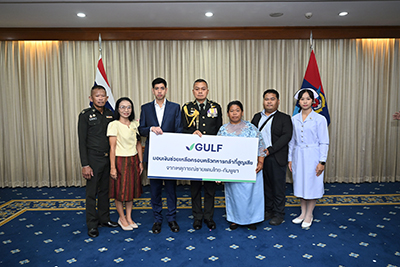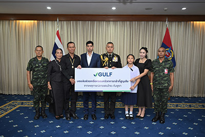 GULF มุ่งมั่นที่จะเป็นส่วนหนึ่งในการขับเคลื่อนสังคมไทยให้เติบโตอย่างยั่งยืนในทุกมิติ โดยเชื่อว่าความมั่นคงของชาติจะเป็นรากฐานสำคัญที่ทำให้ประเทศไทยก้าวไปข้างหน้าได้อย่างแข็งแกร่ง นอกจากภารกิจมอบเงินช่วยเหลือแล้ว GULF ยังคงเดินหน้าช่วยเหลือทหารที่บาดเจ็บและเสียชีวิต จากภารกิจความมั่นคงในพื้นที่ชายแดนอย่างต่อเนื่อง ทั้งการมอบถุงยังชีพ ‘GULF Care’ จำนวนกว่า 2,000 ชุด แก่ทหารและประชาชน ที่ได้รับผลกระทบในศูนย์พักพิงตามจังหวัดต่างๆ การสนับสนุนงบประมาณให้ศูนย์พักพิง รวมถึงการผนึกกำลังกับบริษัทในเครือ เพื่อนำเทคโนโลยีด้านการสื่อสารและดาวเทียมมาช่วยอำนวยความสะดวกให้เจ้าหน้าที่ฝ่ายความมั่นคงสามารถสื่อสารได้อย่างมีประสิทธิภาพยิ่งขึ้น