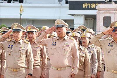 วันที่ 29 ก.ย. 2568 เวลา 08.00 น. ที่บริเวณหน้าเสาธง ศาลากลางจังหวัดกาญจนบุรี นายอธิสรรค์ อินทร์ตรา ผู้ว่าราชการจังหวัดกาญจนบุรี เป็นประธานนำหัวหน้าส่วนราชการ ข้าราชการ เจ้าหน้าที่ และประชาชน ร่วมกิจกรรมเคารพธงชาติและร้องเพลงชาติไทย เนื่องในวันพระราชทานธงชาติไทย ประจำปี พ.ศ. 2568