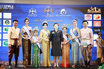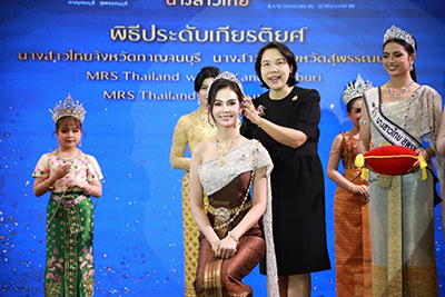 ผู้ว่าราชการจังหวัดกาญจนบุรี - มอบมงกุฎประจำตำแหน่งนางวาวไทยประจำจังหวัด พร้อมสายสะพาย