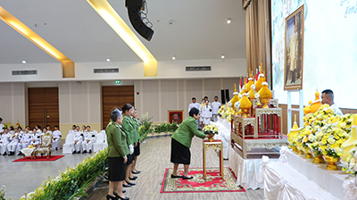 วันที่ 5 ธันวาคม 2568 นายชวนินทร์ วงศ์สถิตจิรกาล ผู้ว่าราชการจังหวัดพระนครศรีอยุธยา พร้อมด้วย นางศุทธิกานต์ วงศ์สถิตจิรกาล นายกเหล่ากาชาดจังหวัดพระนครศรีอยุธยา เป็นประธานในพิธี นำหัวหน้าส่วนราชการพลเรือน ศาล ทหาร ตำรวจ คณะรองผู้ว่าราชการจังหวัดฯ นางสมทรง พันธ์เจริญวรกุล นายกองค์การบริหารส่วนจังหวัดพระนครศรีอยุธยา ประชาชนทุกหมู่เหล่า เข้าร่วมพิธีทำบุญตักบาตรถวายพระราชกุศล พิธีวางพานพุ่มถวายบังคม เพื่อแสดงออกถึงความจงรักภักดีและน้อมรำลึกในพระมหากรุณาธิคุณฯ เนื่องในวันคล้ายวันพระบรมราชสมภพพระบาทสมเด็จพระบรมชนกาธิเบศร มหาภูมิพลอดุลยเดชมหาราช บรมนาถบพิตร วันชาติ และวันพ่อแห่งชาติ 5 ธันวาคม 2568 ณ หอประชุมพระพิรุณระลึกโปรดเกล้าฯ มหาวิทยาลัยเทคโนโลยีราชมงคลสุวรรณภูมิ ศูนย์พระนครศรีอยุธยา หันตรา